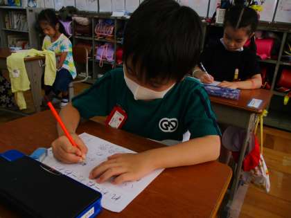 「わ」「ね」「れ」の似ている部分,違う部分に気をつけて丁寧に書きました。姿勢やえんぴつの持ち方にも気を付けて書きました。