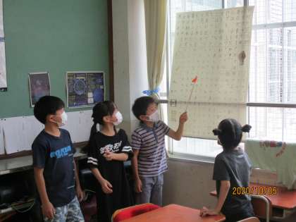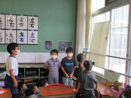 壁新聞を作り,発表をしています。1グループ3回の発表の中で,読むだけでなく話を膨らませて発表できてきました。