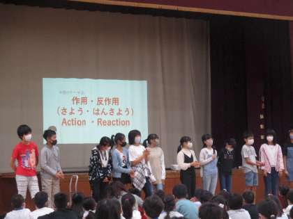 子どもたちが6年間,きれいに歯を保ち続けてきたことに対する表彰を受けている様子です。