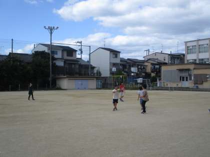 子どもたちがグラウンドで遊んでいる様子です。