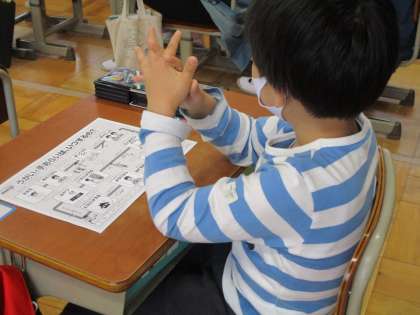 途中にクイズがあり,くしゃみをすると,菌が2m跳ぶことなどを教えてもらってびっくりしていました。