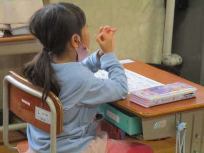 手洗いとうがいの練習の様子です。