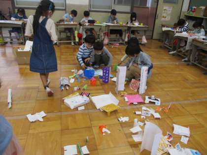 1年 図工「おってたてたら」