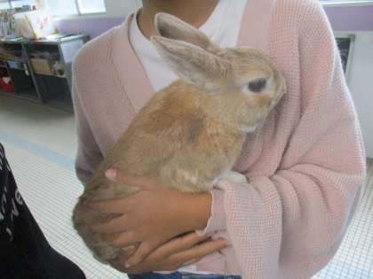 抱っこしてもらってうれしいピョン!