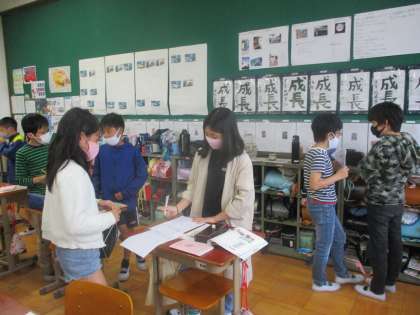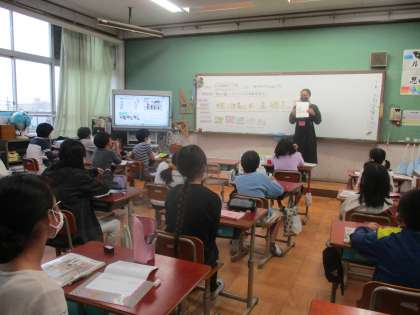 unit4の最後は,友だちと休日の過ごし方をたずね合いました。友だちがどんなお手伝いをしているのか,何時に起きて,寝ているのかなどが分かって楽しかったようです。クラスのお手伝いランキング,早寝早起きランキングも盛り上がりました。