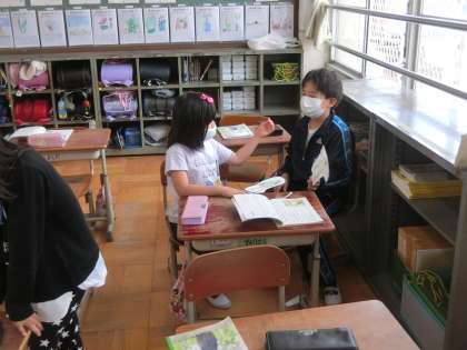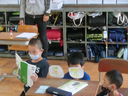 音読発表会に向けて,ペープサートを作りました。ペープサートを効果的に使いながら,音読の工夫を考えました。月曜日の発表会が楽しみです。