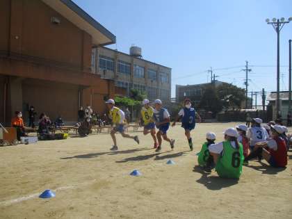 5・6年生が協力してバトンをつなぎました。特に男子リレーは,大接戦で白熱した戦いになりました。1〜4年生も応援してくれ,最後は温かい気持ちで終わることができました。
