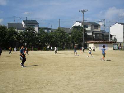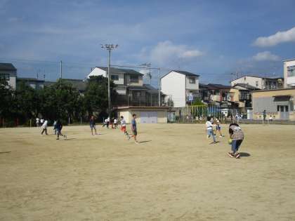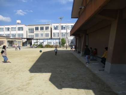 子どもたちがグラウンドで遊んでいる様子です。