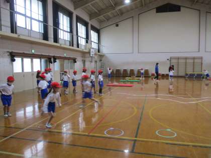 久しぶりに「とびくらべ」をしました。いろいろなコースを自分で選んで跳びました。両足着地に気をつけて跳んでいました。
