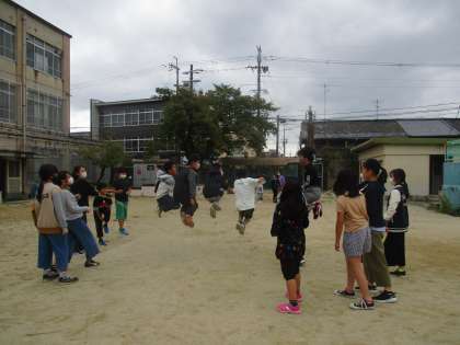 5年生に教育実習生が来ています。歳の近いので,みんなお姉さんのように慕っており,休み時間は大縄で楽しんでいました。