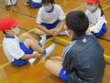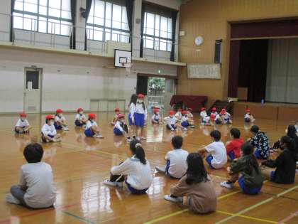 6年生となかよしになろう大作戦をしました。今回は,司会も言葉も1年生がすべて担当して会をすすめました。前に出て,姿勢よく,聞こえる声で堂々と発表することができました。お話タイムでは,お兄さん,お姉さんの名前や好きなものを教えてもらうことができてとても楽しそうでした。