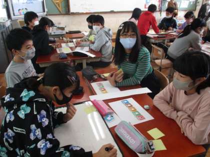 グループで話し合ったり,話し合った内容を発表したりしている様子です。
