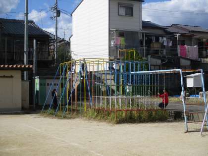 子どもたちがグラウンドで遊んでいる様子です。