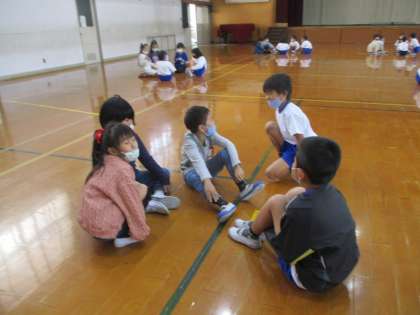 来週の月曜日に予定している校外活動にむけて,1,2年生のグループの顔合わせをしました。自己紹介をしたり,秋見つけで見つけたいものを話したりして交流しました。