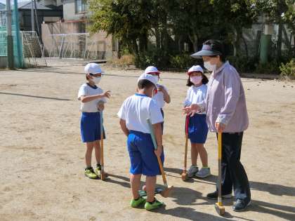 今日の体育では,体育振興会の方々の協力のもと,グランドゴルフ体験をおこないました。とても丁寧に教えていただき,楽しんで活動できました。