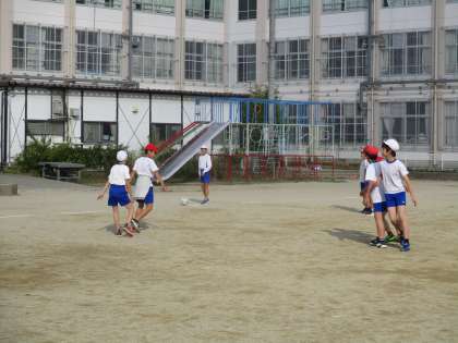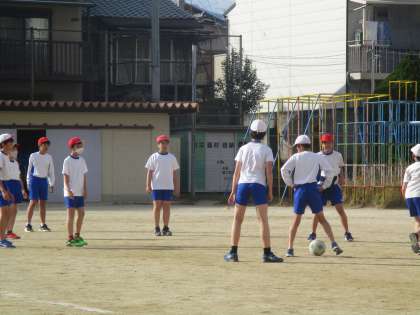 「サッカー」の単元の学習に取り組んでいる様子です。