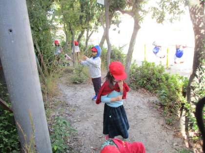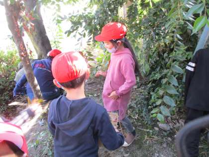 校内で秋見つけをしました。落ち葉や木の実,枝などたくさん集まりました。
