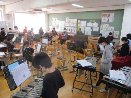 合奏の練習に励んでいます。だんだん息が合ってきました。当日まであと少し!