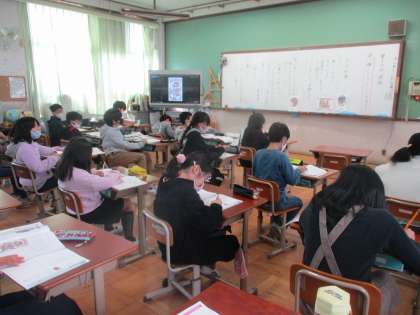 教材「父の仕事」を通して,「働くこと」について考えました。主人公の気持ちを考えることを通して,仕事は大変だけど楽しいこともある,どんな仕事も責任をもってやることが大切などの意見が出ました。また,自分たちがしている委員会活動や係活動とつなげて考えることもできました。