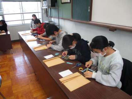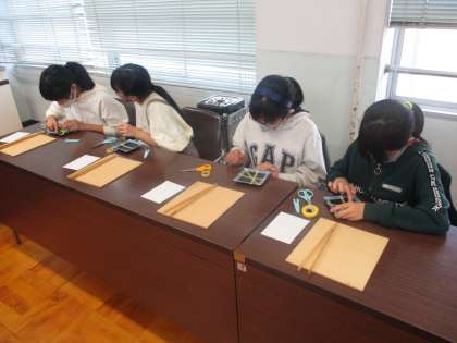 金箔押しに取り組んでいる様子です。