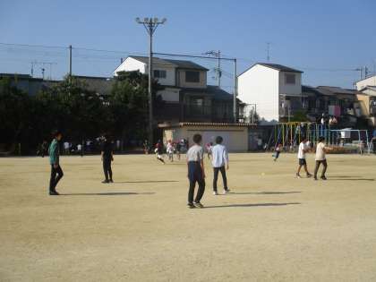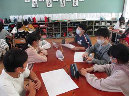 グラウンドで遊んだり,修学旅行にむけて班で話し合ったりしている様子です。