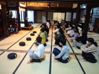 2日目の朝、座禅体験の様子です。なかなかできない体験でした。