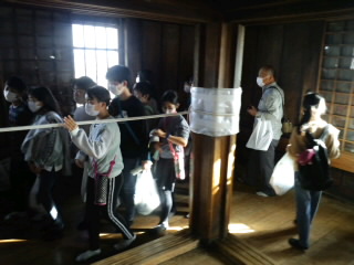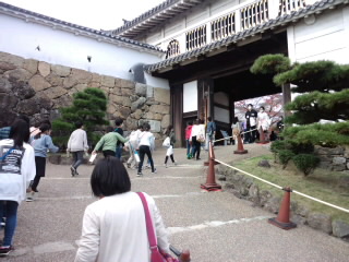 姫路城の天守閣を目指せ,結構急な階段(はしご?)もあります。