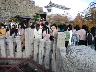 天守閣の最上階からの光景はなかなかのものです。今日は11月とは思えない陽気で、暑かったくらいでした。天守閣に吹き込む風が心地良く感じられました。