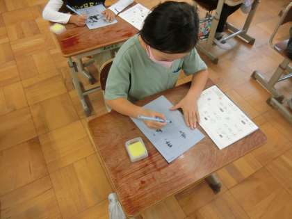 2年生の水書では,筆使いもどんどん丁寧になってきています。ゆっくりと丁寧に文字を書けるようになってほしいと思います。