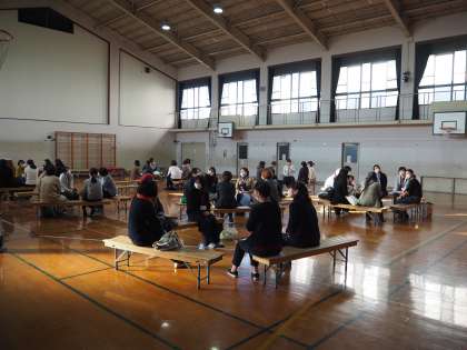 12月2日(水)子どもたちの人権学習の参観ののち,体育館で人権にかかわる問題についての懇談会を行いました。私のほうから昨日の12月1日に人権朝会で子どもたちに読聞かせた絵本のお話と今年修学旅行で訪れた広島の原爆資料館での学びについてお話をしました。そのあとは学級ごとに授業のふりかえりや学級の様子について担任の先生と話し合いをしました。