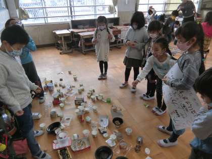 「つくってあそんでくふうして」の単元で作成したおもちゃを使って,1年生を招待しました。1年生に楽しんでもらえるように工夫して,迎えることができました。