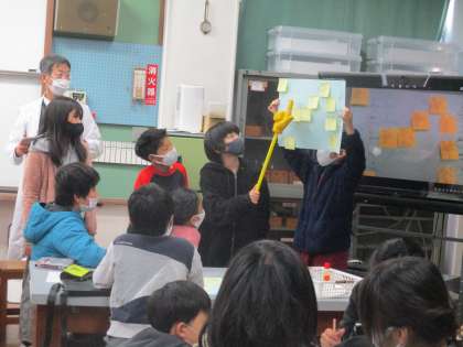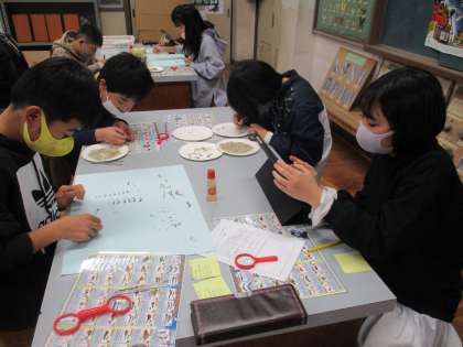校長先生による特別授業「チリメンモンスターを分類しよう」がありました。班ごとに探す,調べる,分類するを分担して進めました。最後は,前に出てまとめを発表しました。チリメンモンスターを探す活動から,中学校で習う「脊椎動物」「軟体動物」などの言葉も知ることができました。