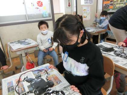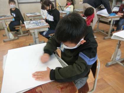 2年生の図工では,紙版画の印刷を行いました。これまで頑張って仕上げてきた紙版画を丁寧に刷りました。