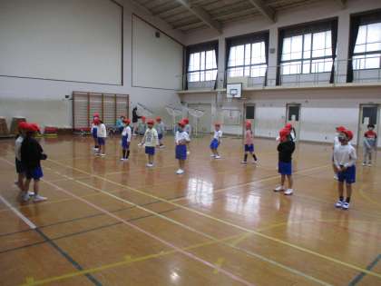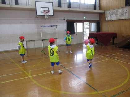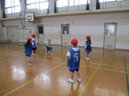 3学期初めての体育は,パスゲームです。初めてなので,チームの友だちとパスの練習をしました。