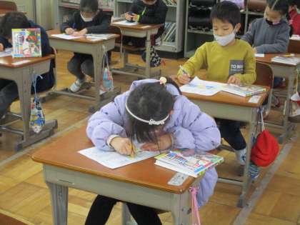 生活見直し週間のチェックカードに毎朝色を塗っています。青色を塗れるように少しずつがんばっている様子が見られます。