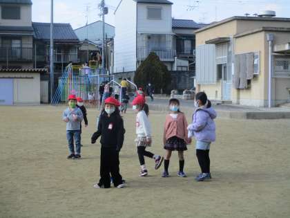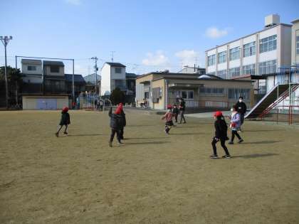 昨日より少し暖かい日差し中,運動場で走り回って遊んでいました。