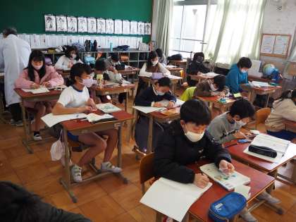1月15日の朱六小の風景です。1月13日京都府に新型コロナウイルスの感染拡大に伴う緊急事態宣言が発令されました。ですが朱六小学校は,感染防止に行いながら通常どおり授業をしております。今日は天気も良く久しぶりに青空を見た気がします。子どもたちの笑顔と穏やかにそして落ち着いて授業を受けている様子がコロナ禍の中ですが,なぜか安堵します。