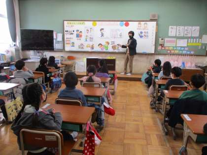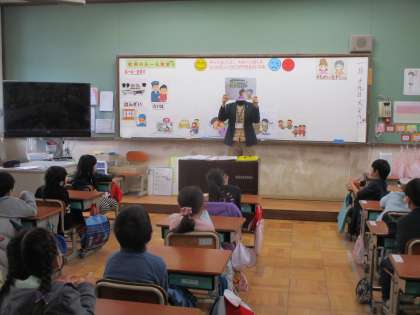 中京署の方い来ていただき,『社会のルール』について教えていただきました。最初に警察の方のお仕事のことも教えてもらいました。そのあと,だれもがにこにこになれるように考えていくために「してはいけないこと」を教えていただきました。これからの生活で,ルールや約束を守ることを大切にしてほしいと思います。