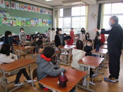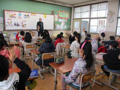 自分たちの身の回りのことから社会のことまで,よい事と悪い事についてわかりやすくお話をしてくださいました。子ども達は,いつもよりピリッとした態度でお話を聞いてました。