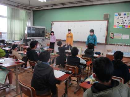 冬の俳句を一人一句出し,一番の句を選ぶ句会を開きました。夏,秋に続き,今回も素敵な句が出そろいました。上位3名には喜びのコメントをもらい,どんなところが良かったかのみんなで感想を交流しました。