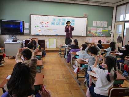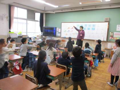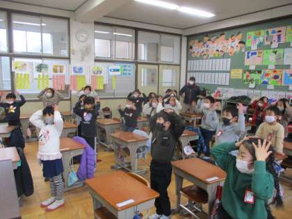まずは,今まで学習した『数』『色』『体の部分』の言い方の復習をしました。その後,じゃんけん大会をしました。