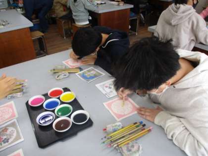 総合的な学習の時間に手描き友禅を体験しました。