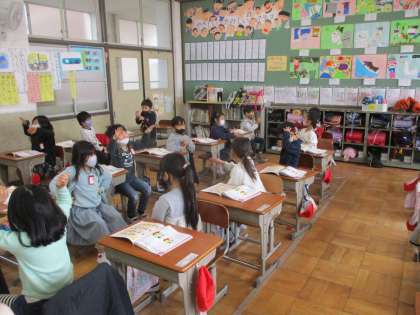 その後は,「おちゃらかほい」の手遊びをしました。まずは,ゆっくりから遊んでみました。そして,最後に高速にチャレンジしました。すると,歌の速さについていけず,勝ったのか負けたのかも分からなくて,思わず踊ってしまう様子も見られました。みんなで大笑いです。