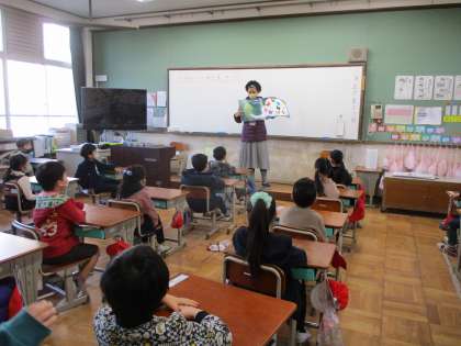 今日も色の学習をしました。絵本を読んでもらった後,色カードでゲームをしました。オグアラ先生から言われた色を指さしたり,色を覚えて並べたりしました。