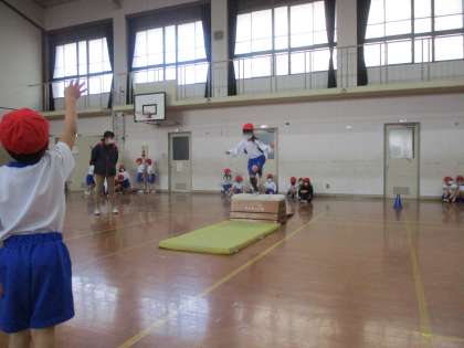 見ている友だちにアドバイスをもらいながらいろいろな跳び方にチャレンジしました。