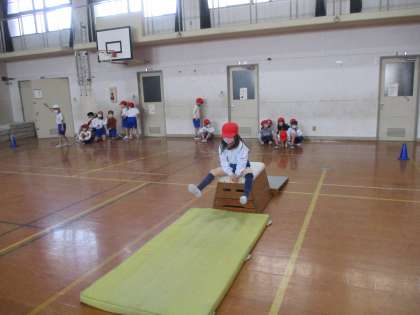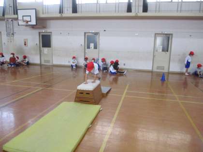 今日は,横開脚跳び,縦開脚跳びもチャレンジしましたが,両足踏切がまだうまくできないので,そこから練習が必要のようです。