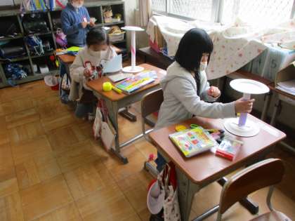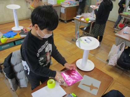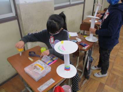 来週の図工で仕上げをした後転がして遊びます。「ころがしたらどうなるかなあ?」今から楽しみにしているようです。