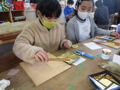 【4年 金箔貼り体験】