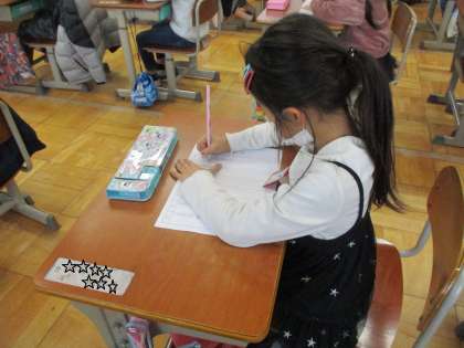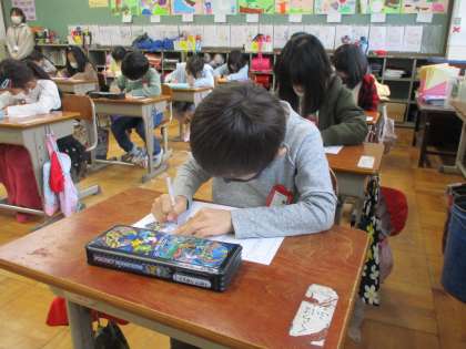 かん字の小テストをしました。同じ漢字でも,読み方が違うと少し悩む様子も見られました。