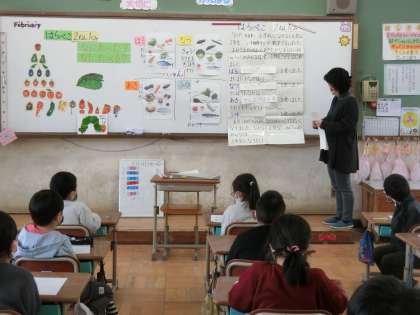 今回の食に関する指導では,旬の食べ物について学びました。それぞれの季節においしい食べ物は何かを考えました。
